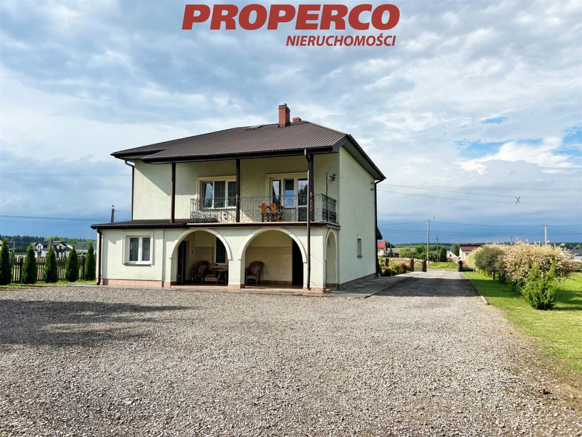 For Sale: Property consisting of a detached house with a living area of 153.5 square meters (total area 211.6 square meters), located on a plot of land with an area of 6000 square meters in Snochowice, Łopuszno municipality. The property also includes a second plot of land (behind the house) with an area of 6000 square meters.