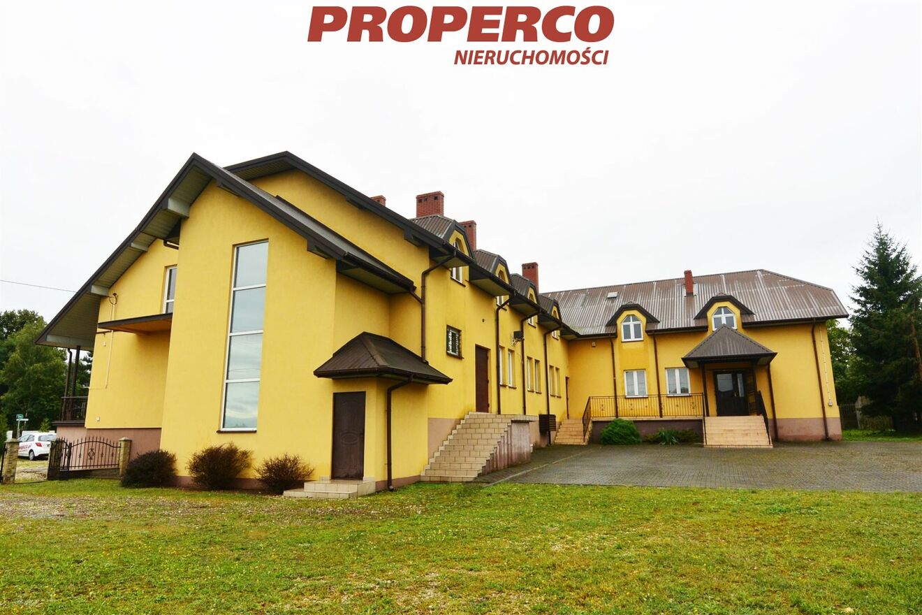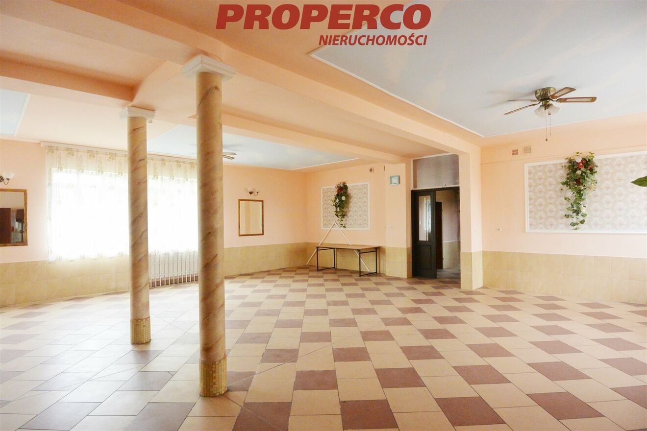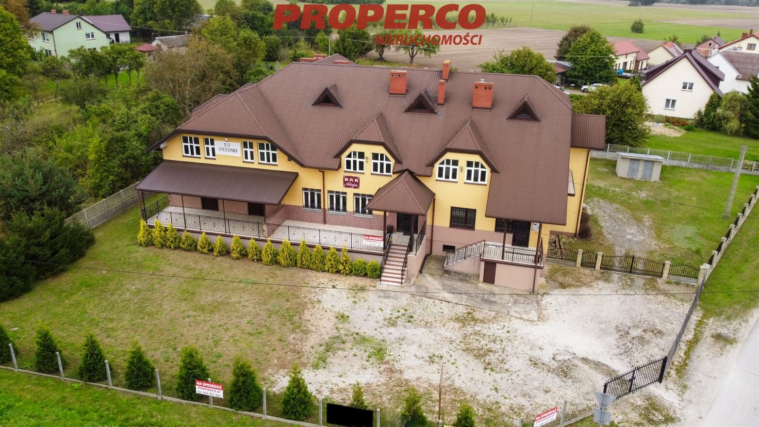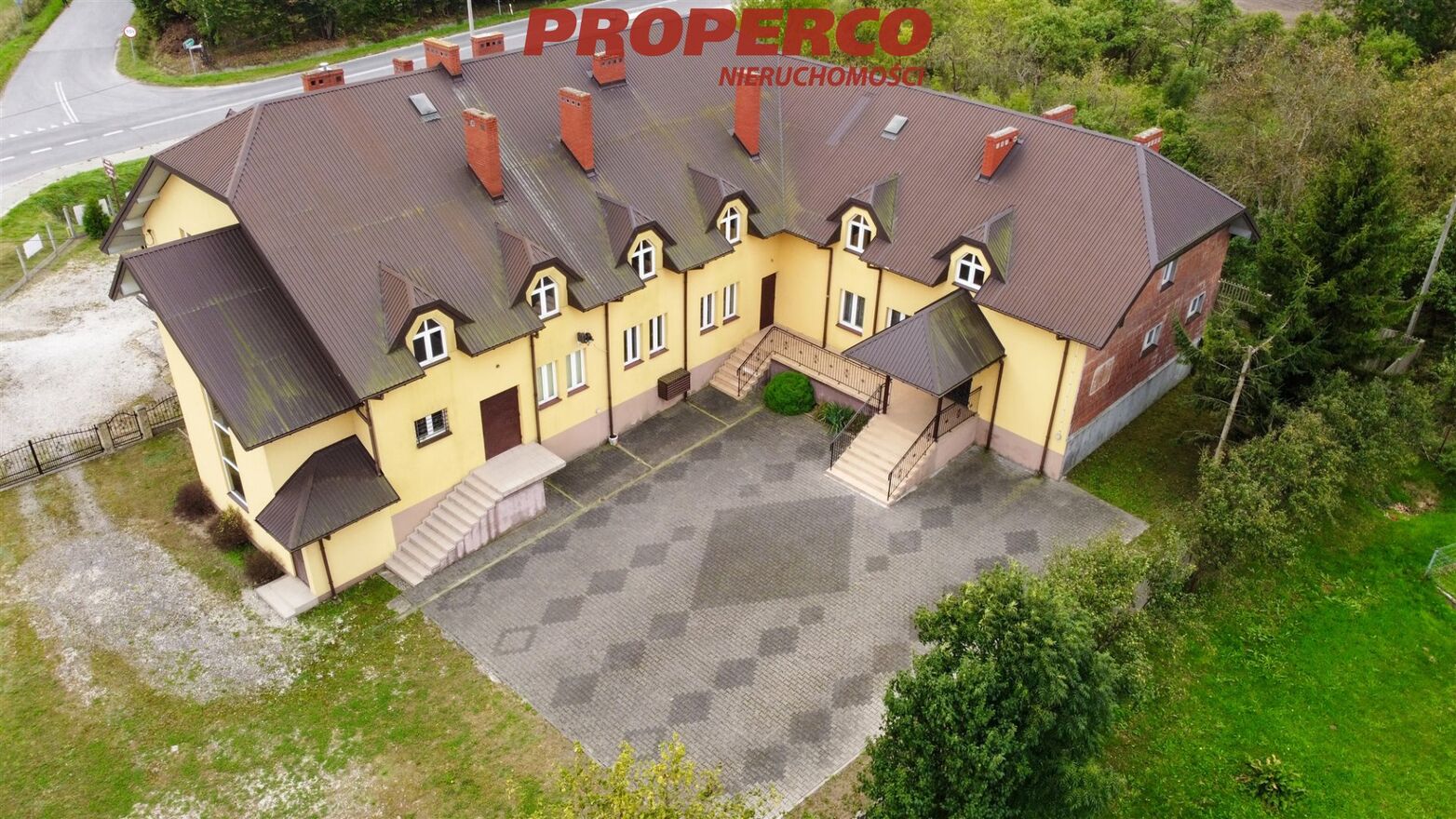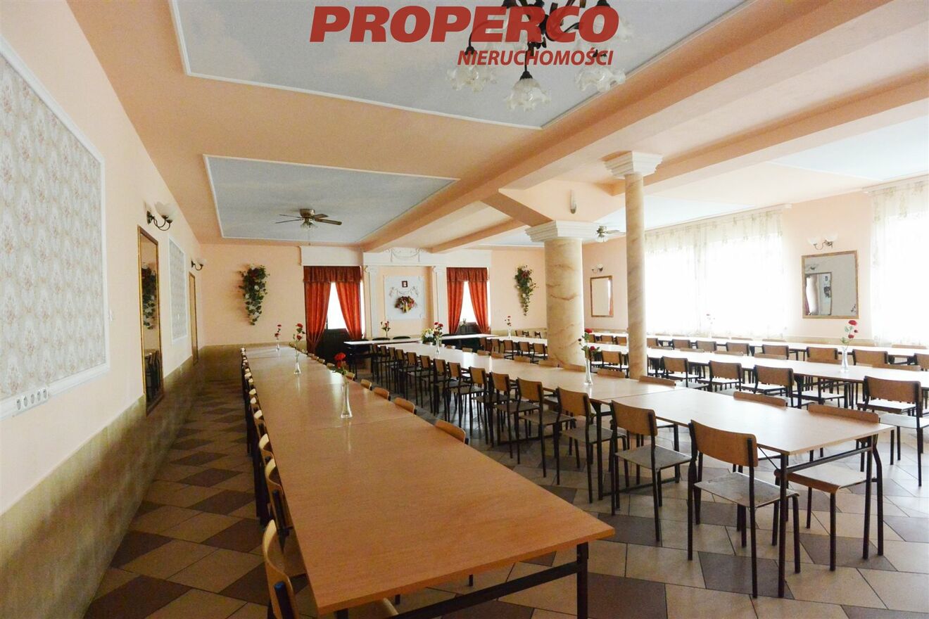 For Sale: Commercial - Restaurant - Hotel Building with a total usable area of 760.80 square meters (approximately 873 square meters in total), located in Snochowice, Łopuszno municipality. The standalone building is partially basement, with a ground floor and a usable-residential attic.